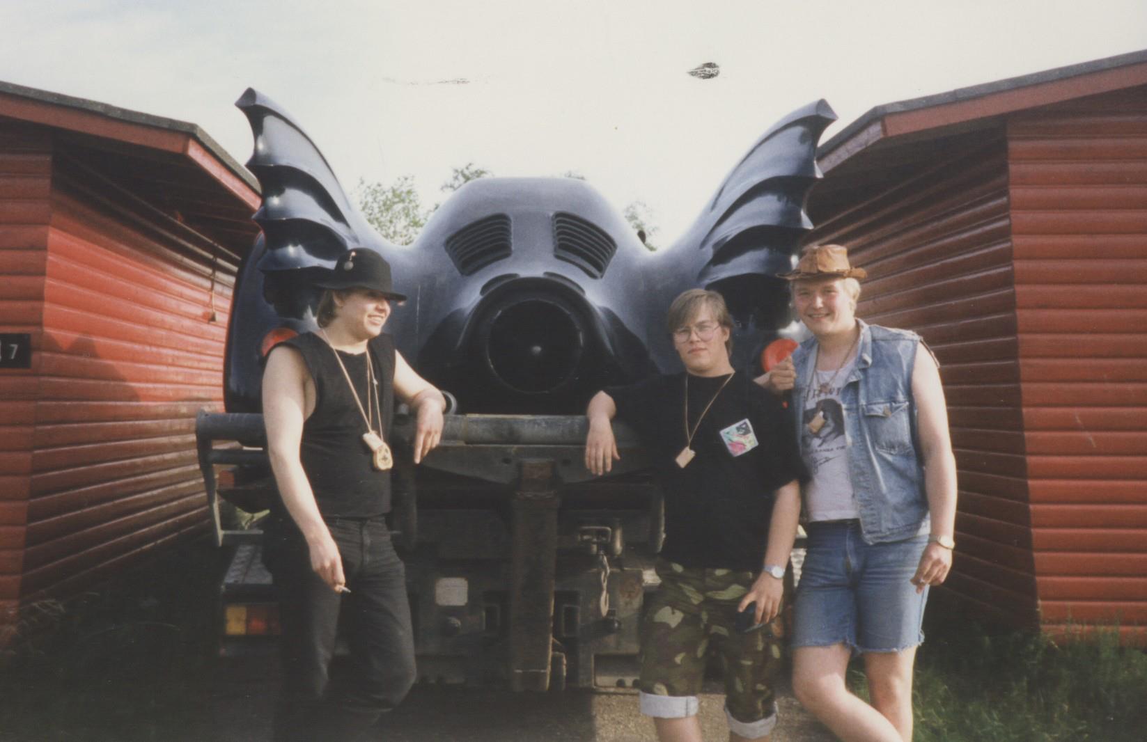 Leirintäalueen portilla on kuorma-auto ja sen lavetilla Batmobile. Sama auto, joka on esiintynyt Tim Burtonin Batman-elokuvissa. Menemme koputtelemaan autoa ja jättämään siihen sormenjälkiämme.