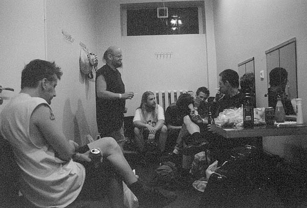 Bileet jatkuvat koko yön. Rebelin löytymistä sietää juhlia. Tavallaan kiertue on startannut uudestaan. Takahuone on tupaten täynnä porukkaa. Yksi takahuoneeseen sammunut elämää nähnyt hampuusi muistuttaa niin paljon Oasis-veljeksiä, että ristimme tyypin Joel Gallagheriksi. Hauskaa riittää. Käyn välillä katsomassa bändejä, vaikka soitto kuuluu hyvin muutenkin.