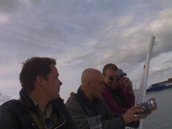 Tapaamme Jurskiksen satamassa ja astumme laivaan. Kiertueen ensimmäinen keikka on Pärnussa. Matkaa kertyy Tallinnasta vain 150 kilometriä, joten voimme ajella kaikessa rauhassa. Perillä ehdimme kierrellä terasseja, käydä syömässä ja pulahtaa meressä. Keikkapaikalle saavumme silti etuajassa.