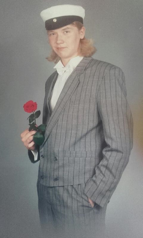 Mitäpäs sitten. Lakki tuli, todistus myös, paikallislehti nappasi lehteen kuvan. Kahvittelujen jälkeen vaihdoin puvun nahkarotsiin, lakin aurkinkolaseihin, tupeerasin tukan pystyyn ja menin treenikämpille Lehmon nuorisoseurantalolle, jossa kaverit jo odottivat kaljakorin kanssa. Aamuyöstä muistan huilanneeni Joensuussa Postipankin konttorin tuulikaapissa, jossa oli pankkiautomaatti.