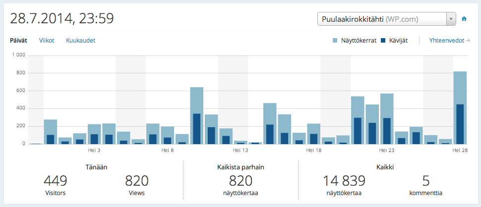 Kuvakaappaus sivuston tilastoista. Kiitos kaikille lukijoille, onhan tämä hurjaa!